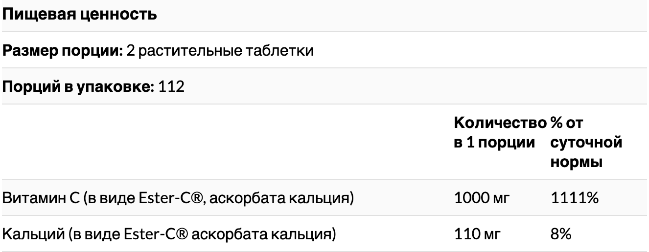 Ester-C ® — это революционная рецептура витамина C, содержащая метаболиты природного происхождения. Метаболиты способствуют усвоению витамина C лейкоцитами, которые являются важной составляющей иммунной системы организма. Водная технология, положенная в основу процесса производства Ester-C ® нейтрализует pH, благодаря чему он становится некислым и мягко действует на желудок. Суточная доза препарата Ester-C® (1000 мг) обеспечивает надёжную поддержку иммунной системы в течение 24 часов. Один приём в день — и ваш иммунитет в порядке.